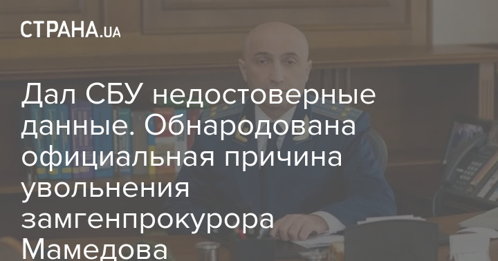 Дал СБУ недостоверные данные. Обнародована официальная причина увольнения замгенпрокурора Мамедова