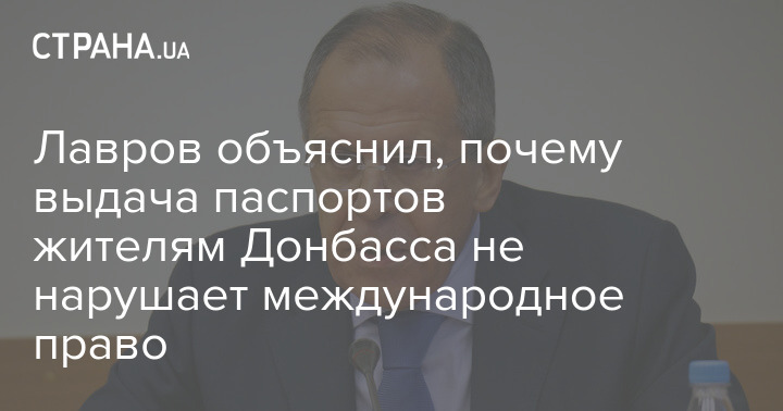 Министр иностранных дел Росси Сергей Лавров, считает, что выдача российских паспортов жителям "ДНР" и "ЛНР", (полмиллиона из которых получили российские документы - Ред.), не нарушает международное право.