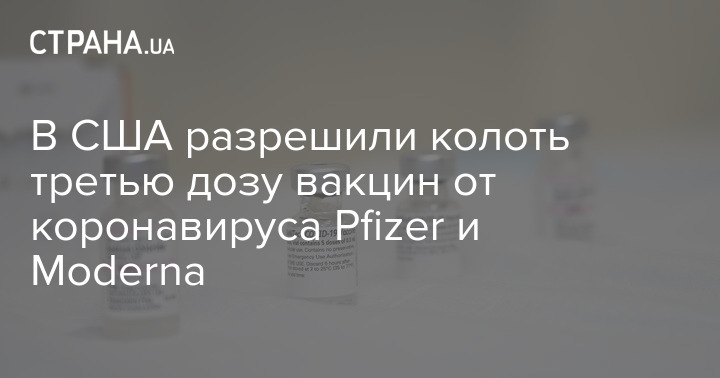 В Соединенных Штатах разрешили колоть третью (бустерную) дозу вакцин от коронавируса компаний Pfizer и Moderna для людей со сниженным иммунитетом.