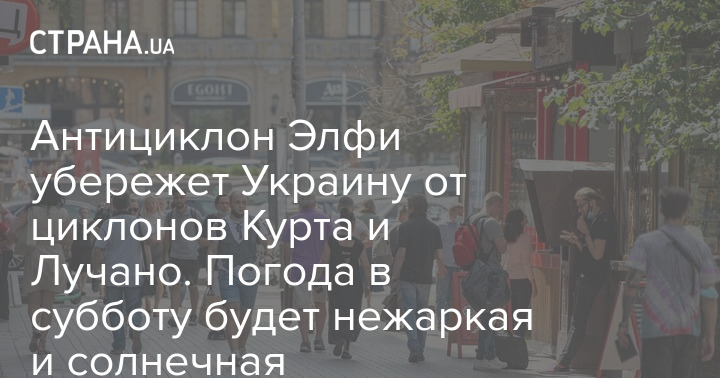 По словам Диденко, комфортной погода в субботу будет благодаря антициклону Elfi, именно он не дает дождливым циклонам Kurt и Luciano формировать погоду в нашей стране. Незначительные осадки 14 августа ожидаются в восточных областях и Приазовье.