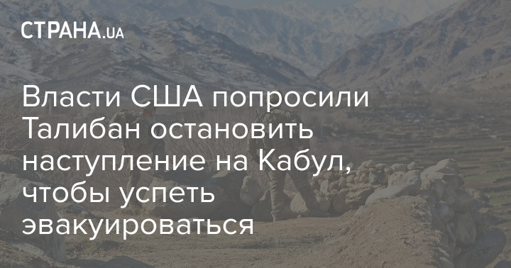 Власти США обратились с просьбой к руководству движения "Талибан" отложить захват столицы Афганистана - Кабула, чтобы американцы успели эвакуировать оттуда своих дипломатов, активы и граждан иностранных государств.
