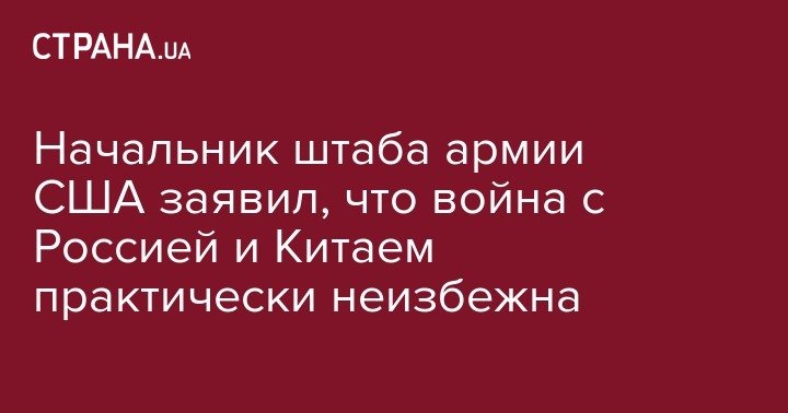 Во вторник, 4 октября на ежегодной конференции Ассоциации Армии США в Вашингтоне начальник штаба Армии США Марк Милли заявил, что война против России и Китая "практически неизбежна", сообщает британское издание The Independent в четверг, 6 октября.