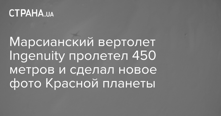 Беспилотный вертолет Ingenuity ("Изобретательность"), который в июле совершил свой самый длинный перелет на Марсе, продолжает исследовательскую миссию Национального управления по аэронавтике и исследованию космического пространства США (NASA). Во время своего двенадцатого полета он сделал черно-белый снимок Красной планеты.