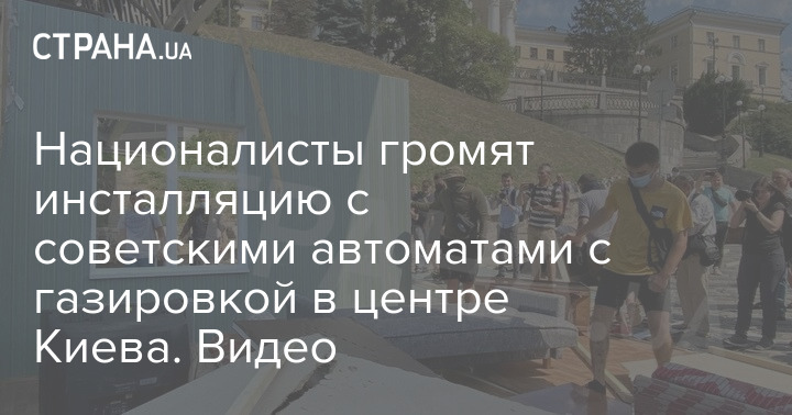 Националисты громят инсталляцию с советскими автоматами с газировкой в центре Киева. Видео