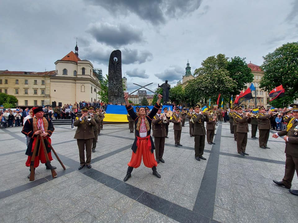 12:00 Показательное выступление роты почетного караула Национальной академии сухопутных войск им. гетмана Петра Сагайдачного и дефиле военного оркестра (площадь у памятника Шевченко).