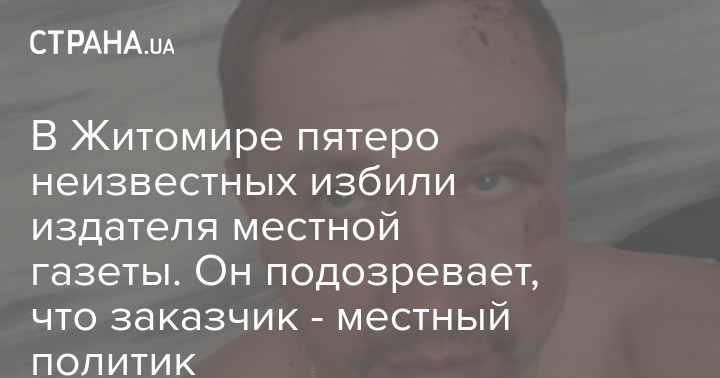 В ночь на воскресенье, 15 августа, в центре Житомира неизвестные избили издателя местной газеты "20 минут" Александра Васильковского. Пострадавший считает, что в нападении замешан местный публичный деятель из сферы политики.