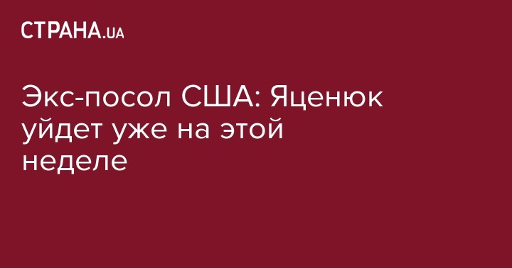 Бывший посол США в Украине Стивен Пайфер заявил, что уже на этой неделе в Украине состоится смена премьер-министра страны. Об этом он сообщил в своем Twitter.