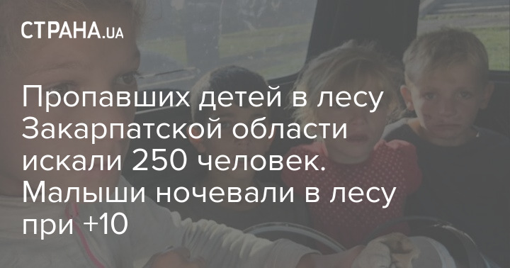 Вчера, 18 августа, в Закарпатской области в лесу потерялись четверо детей, которые пошли собирать ягоды. При этом их родители обратились к правоохранителем только через девять часов после того, как малыши ушли из дома. Поиски детей продолжались всю ночь и к утру их удалось найти.