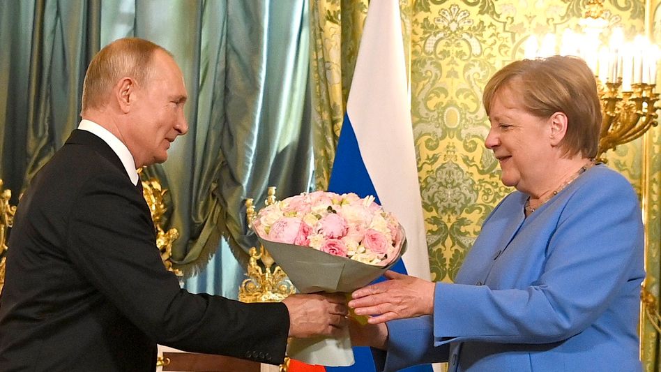 Путин подарил Меркель букет роз. Фото: Spiegel