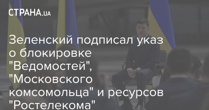 Президент Владимир Зеленский подписал указ о вступлении в силу решения СНБО о блокировке  в Украине ресурсов"Ростелекома" и ряда российских СМИ, в том числе - "Ведомостей" и "Московского комсомольца".