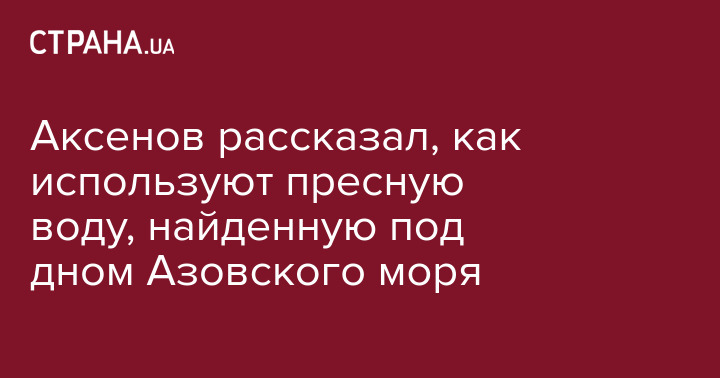 "Глава" Крыма Сергей Аксенов рассказал, как можно будет использовать воду, найденную под дном Азовского моря. По его словам, ее можно пустить по перекрытому Киевом Северо-Крымскому каналу в сторону Джанкоя и использовать для полива земель.