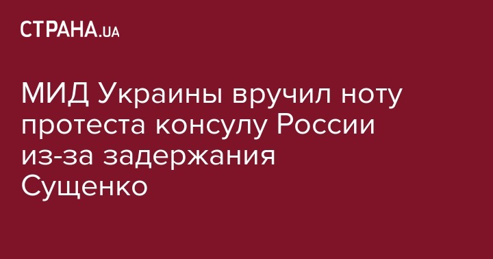 Украинская сторона вручила ноту протеста консулу России после задержания в Москве журналиста Романа Сущенко. Об этом МИД сообщил в Facebook.
