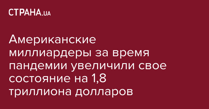 Американские миллиардеры за время пандемии увеличили свое состояние на 1,8 триллиона долларов