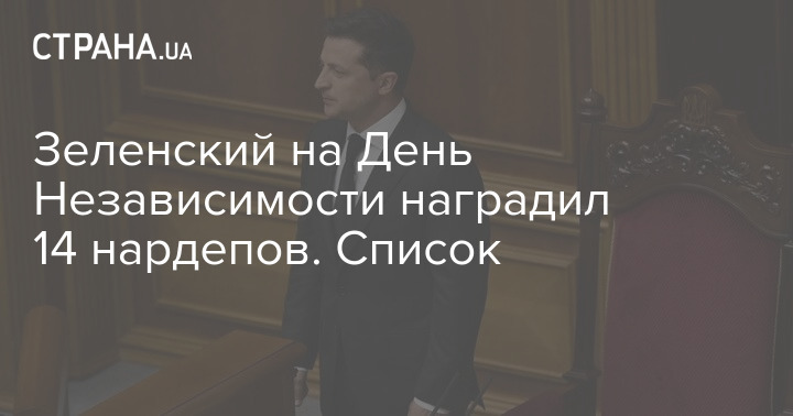 В честь Дня Независимости глава Украины Владимир Зеленский наградил орденами и почетными званиями 14 народных депутатов, включая девятерых "слуг народа".