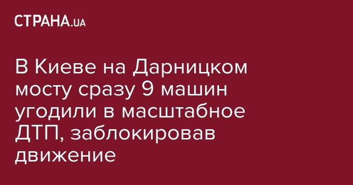 В Киеве, около получаса назад на Дарницком мосту произошло массовое ДТП с участием 9 автомобилей. Как сообщил очевидец аварии Маким Кугрышев на своей странице в Facebook, мост перекрыт. Причины аварии устанавливаются.