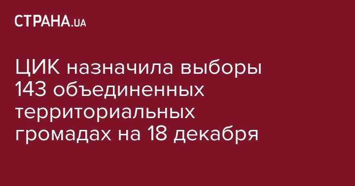 Ранее ожидалось, что выборы в объединенных территориальных общинах Украины будут назначены на 11 декабря. Ранее Рада не захотела отдавать право передела районов территориальным общинам.