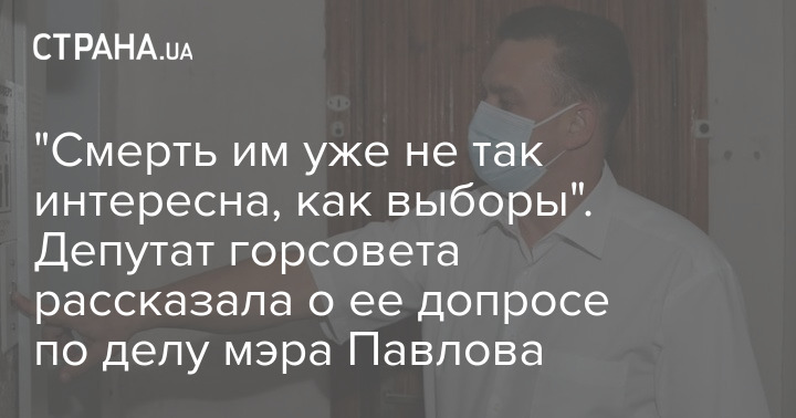 "Смерть Константина Павлова следователям уже не так интересна, как выборы в Кривом Роге. Их возмущает, что тут не киевская власть или зе-партия, которая здесь куплена местным олигархатом. Вчера на допросе больше всего обсуждали грядущие выборы. В частности, почему Котляр отказался от должности, и почему я подала кандидатуру Юрия Вилкула", - рассказывает она.