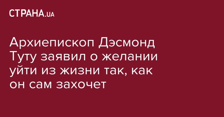 Лауреат Нобелевской премии мира, борец с апартеидом и священник Дэсмонд Туту заявил, что не хотел бы, чтобы его жизнь поддерживали любой ценой. О своем желании он написал в колонке в газете Washington Post, приуроченной к его 85-летию.