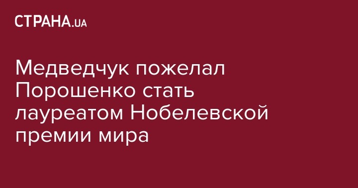 «Я искренне желаю Петру Алексеевичу Порошенко стать следующим лауреатом Нобелевской премии мира за прекращение конфликта на Востоке Украины». Так Виктор Медведчук прокомментировал присуждение Нобелевской премии мира Хуану Мануэлю Сантосу.