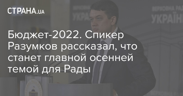 Спикер украинского парламента Дмитрий Разумков, который ранее опроверг слухи о своей отставке, заявил, что основным вопросом, который нардепы будут обсуждать осенью, станет проект бюджета на следующий год.