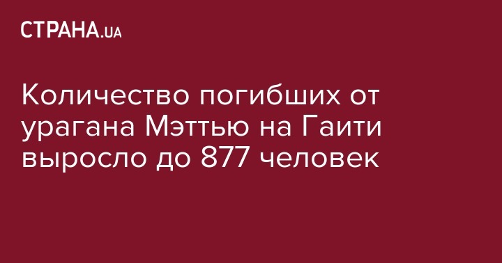 Число жертв урагана Мэттью на Гаити возросло до 877. Об этом сообщает агентство Reuters.