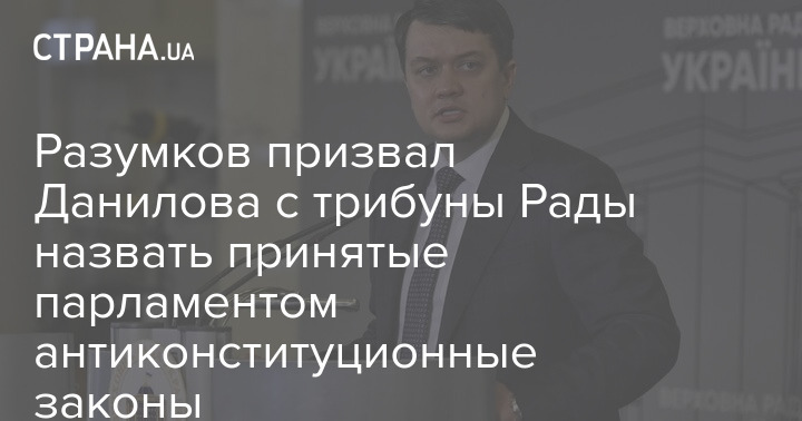 Спикер Верховной Рады Разумков отреагировал на заявление секретаря СНБО Алексея Данилова о том, что некоторые принятые парламентом законы не отвечают Конституции и могут содержать коррупционные составляющие. Во время сегодняшнего брифинга Разумков призвал Данилова конкретно назвать эти законы.
