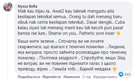 В то же время свои сообщения малазийцы перевели через гугл-переводчик. Значение некоторых предложений, которые они оставляют в комментариях, понять довольно сложно из-за этого.