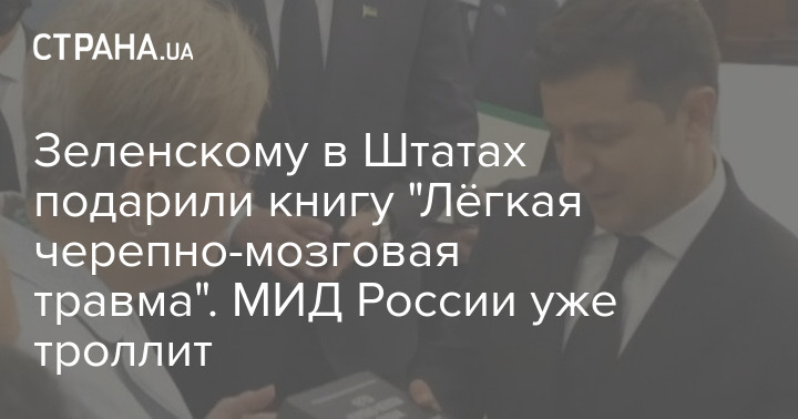 Зеленскому в Штатах подарили книгу "Лёгкая черепно-мозговая травма". МИД России уже троллит