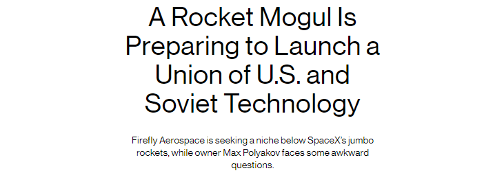 Интересно, что именно после прихода Полякова на Firefly посыпались заказы от NASA, Пентагона, Space X и других крупных компаний и ведомств США. У них уже бронируют доставки грузов на орбиту и даже на Луну - хотя еще ни одной ракеты пока успешно не взлетело.