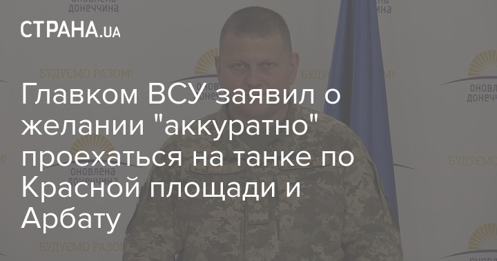 Главнокомандующий Вооруженными силами Украины Валерий Залужный заявил, что хотел бы проехаться на танке по Красной площади Москвы и по Арбату (одна из центральных улиц Москвы).