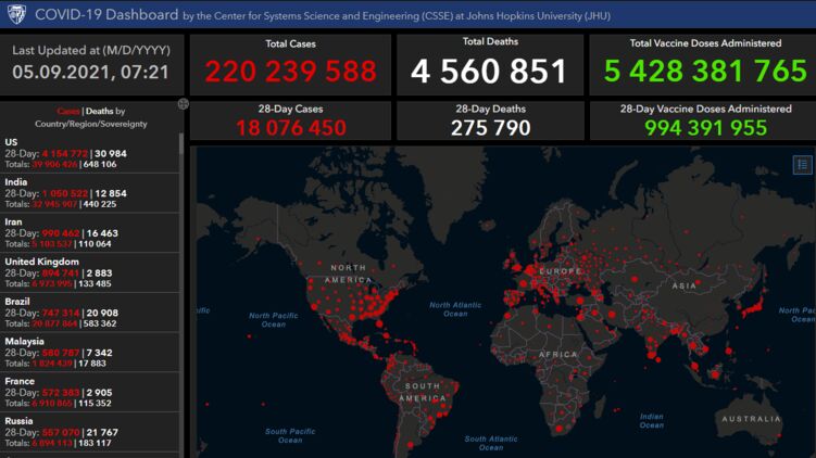 На планете же в целом, ситуация также остается крайне сложной. По состоянию на 08.00 5 сентября, университет имени Дж. Хопкинса зарегистрировал такие данные: oбщее число зараженных с начала пандемии на Земле составило 220 239 588 человек. Умерли уже 4 560 851 человек.