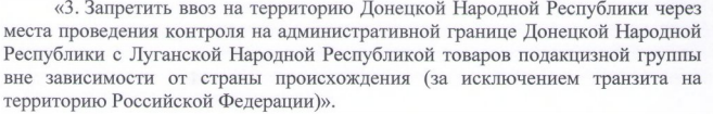 Речь о подакцизных товарах - алкоголе, сигаретах, топливе. Их ввоз на территорию "ДНР" был запрещен. Соответственно, те же правила немедленно ввел и Луганск.