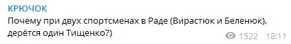 "Почему при двух спортсменах в Раде (Вирастюк и Беленюк), дерётся один Тищенко?" - написала заместитель главного редактора "Страны" Светлана Крюкова.