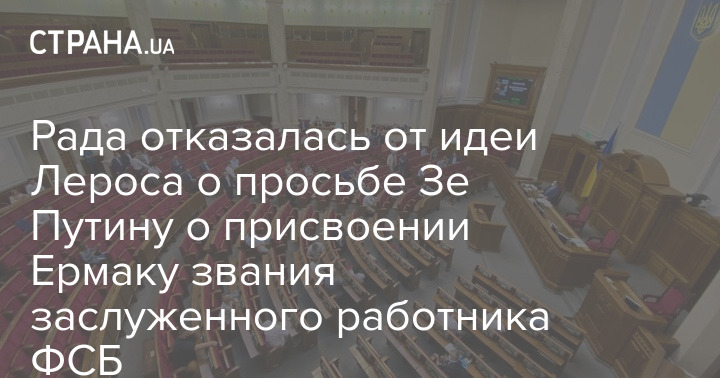 Верховная Рада Украины не поддержала запрос народного депутата Гео Лероса. В нем парламентарий изложил идею о том, чтобы президент Украины Владимир Зеленский обратился к российскому коллеге Владимиру Путину с ходатайством присвоить главе Офиса президента Андрею Ермаку звание заслуженный работник ФСБ за срыв спецоперации по "вагнеровцам".