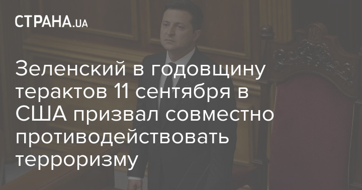 Президент Украины Владимир Зеленский в годовщину теракта в Соединенных Штатах 11 сентября заявил о том, что необходимо совместно противодействовать терроризму.