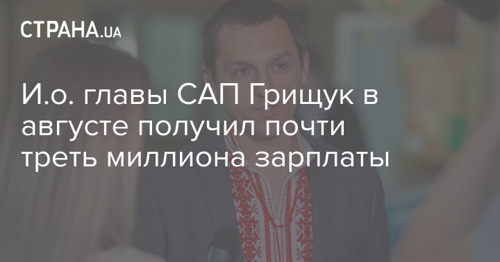 И.о. главы САП Грищук в августе получил почти треть миллиона зарплаты