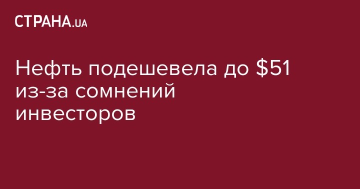 Утром стоимость декабрьских фьючерсов на нефть Brent снизилась на 0,85% — до $51,49 за баррель. Ноябрьские фьючерсы на нефть марки WTI подешевели на 0,88% — до $49,37.