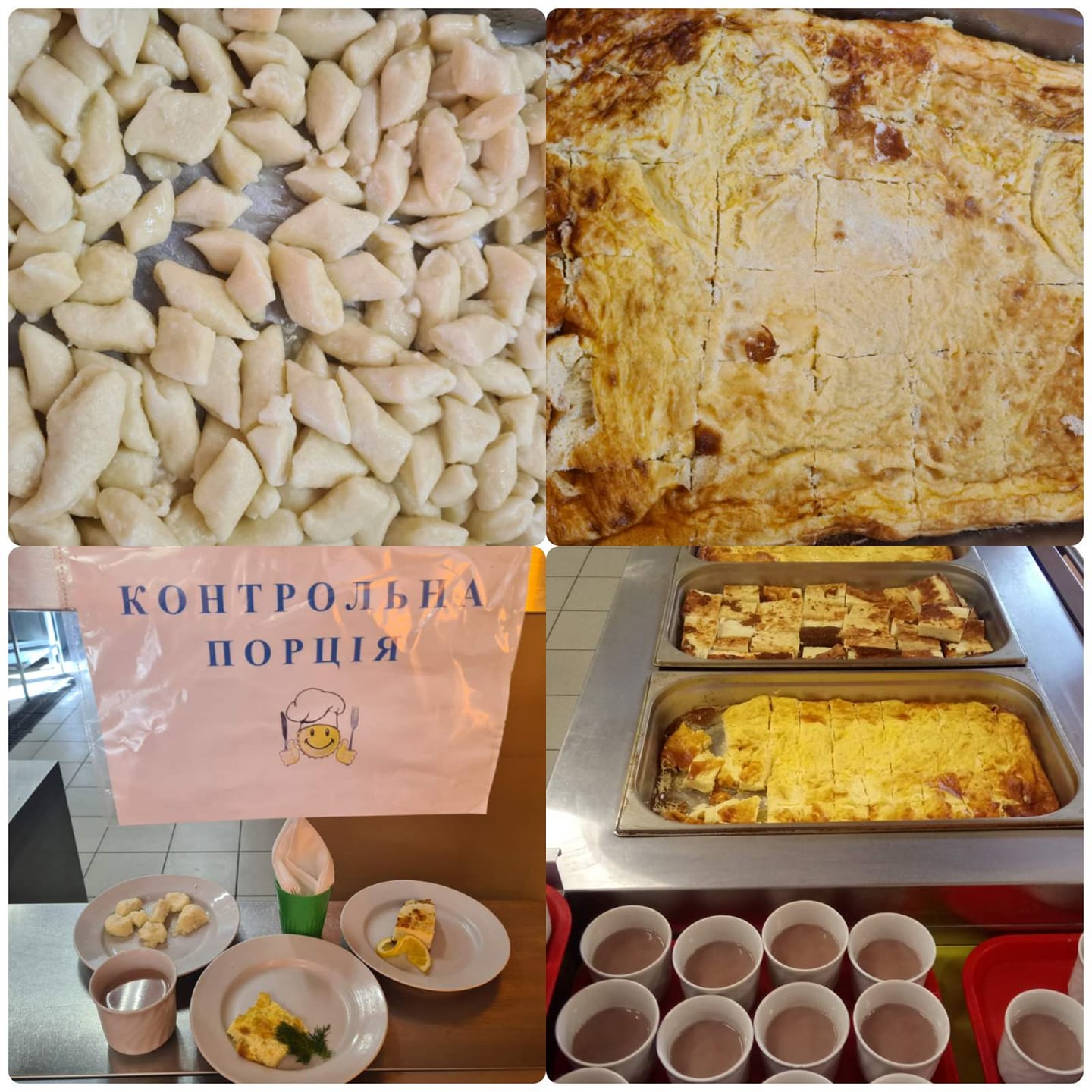 На другом фото - блюдо, похожее на галушки, омлет с зеленью и запеканка с какао.