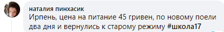 В школе № 17 Ирпеня (Киевская область) цена на питание поднялась до 45 грн за обед, но новшества под давлением родителей не прижились.