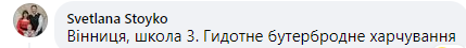 "Винница, школа № 3. Отвратительное бутербродное питание", - написала Светлана Стойко.