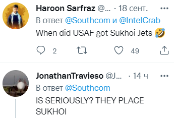 Южное командование министерства обороны США поздравило американские ВВС с днем формирования, опубликовав в своем Twitter запись с силуэтами советских истребителей Су-27.