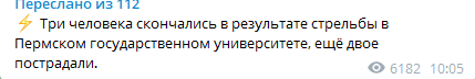 Первые кадры с места ЧП в Перми, скриншот ТГ-канал 112