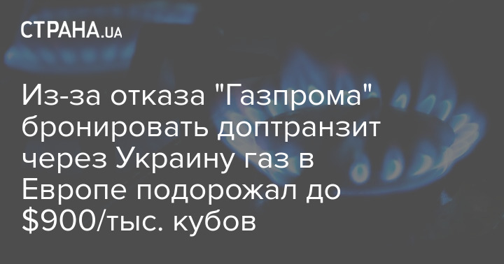 Цена газ в Европе снова взлетела до уровня в $900 за тысячу кубов. Причиной стал отказ российского "Газпрома" бронировать дополнительные транзитные мощности через Украину на октябрь, а также выкупил лишь треть от предложенной транзитной мощности польского участка газопровода "Ямал-Европа" на будущий месяц.