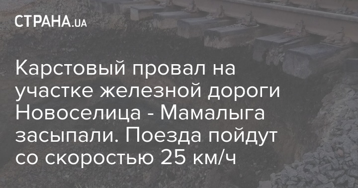Карстовый провал на участке железной дороги Новоселица - Мамалыга засыпали. Поезда пойдут со скоростью 25 км/ч