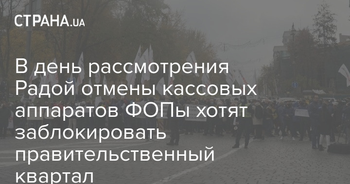 ФОПы на четверг, 23 сентября, когда Верховная Рада будет рассматривать законопроект об отмене для них обязательных кассовых аппаратов (или регистраторов расчетных операций, РРО), намерены устроить акцию протеста. Они объявили всеобщую мобилизацию и планируют заблокировать правительственный квартал.