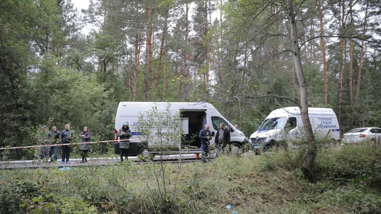 В лесу тщательно ищут улики. Фото: Нацполиция