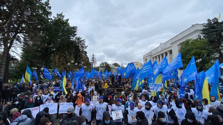 В Киеве по зданием Верховной Рады проходит масштабный митинг ОПЗЖ. Протестующие требуют от власти