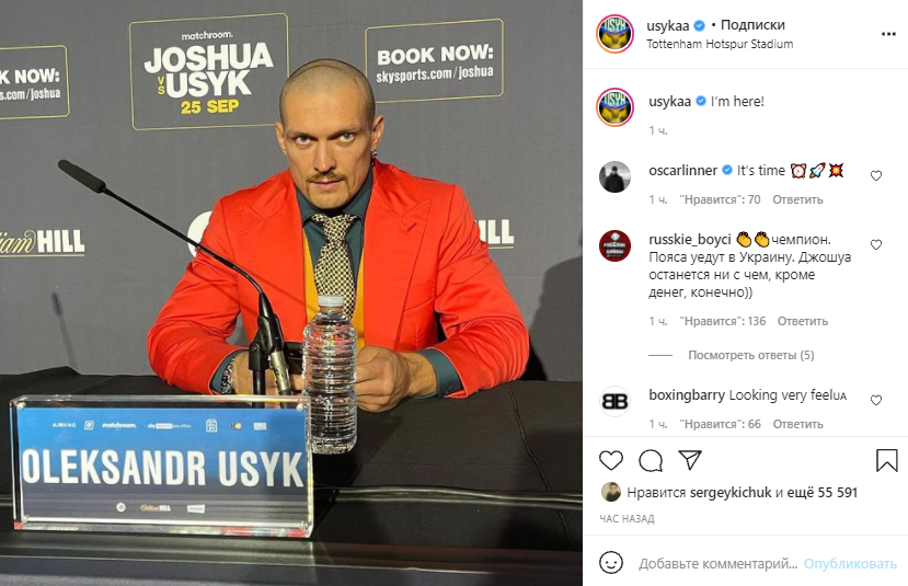 Как сообщала "Страна", в субботу, 25 сентября боксер-тяжеловес Александр Усик проведет бой с британским спортсменом Энтони Джошуа. Встреча состоится в Лондоне на футбольном стадионе "Тоттенхэм".