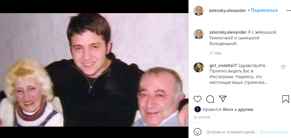 Отец президента Украины Александр Зеленский появился в Instagram. Хотя аккаунт зарегистрирован еще полгода назад, его активность началась в последние несколько дней.
