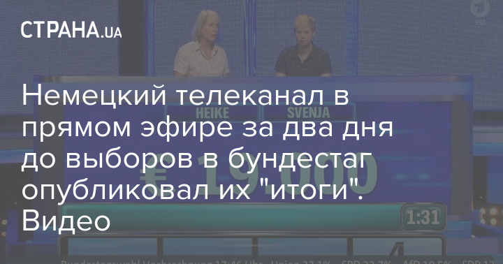 Немецкий телеканал в прямом эфире за два дня до выборов в бундестаг опубликовал их "итоги". Видео
